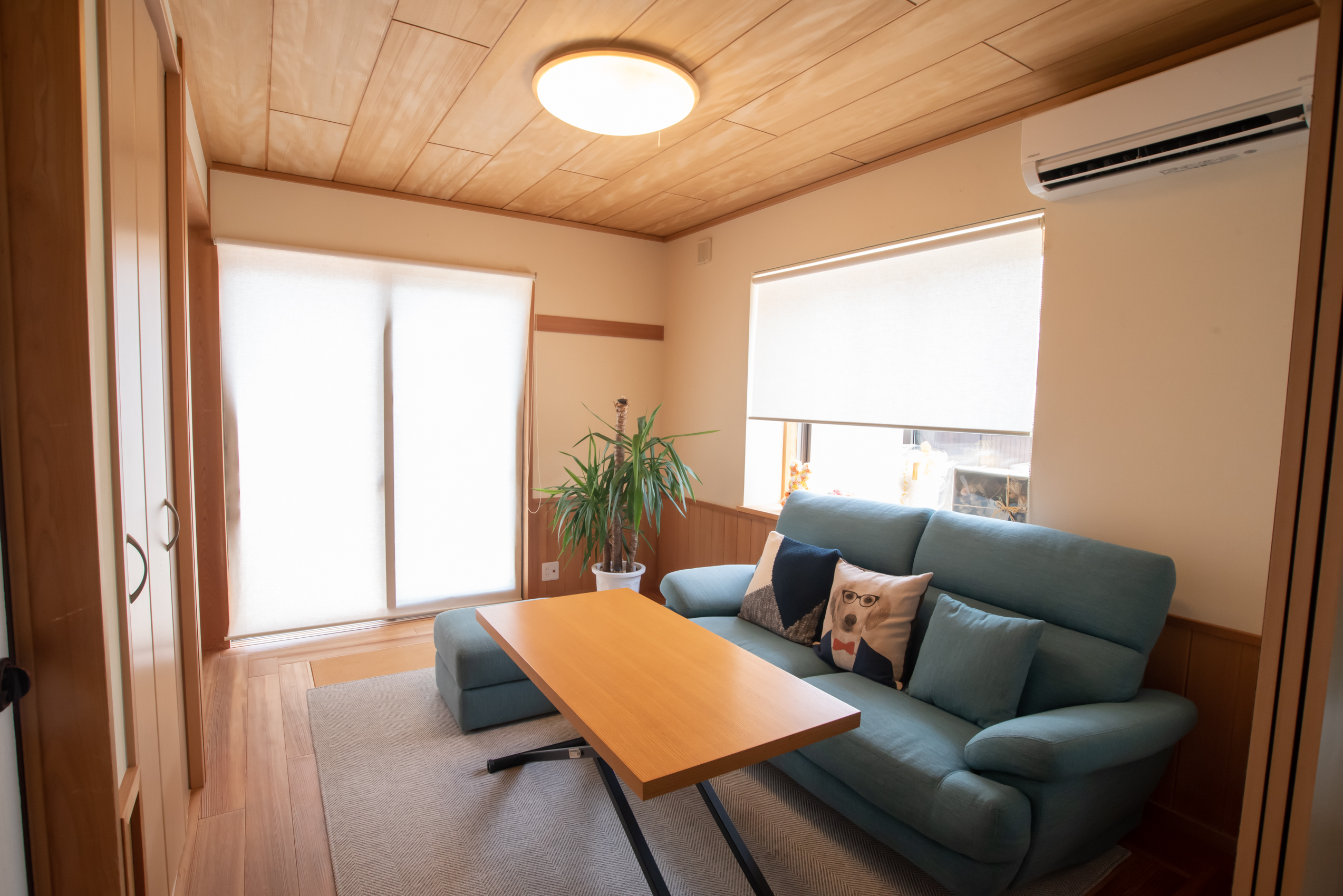 都市郊外に建つブルーの家と